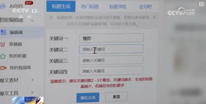 国内一网站可提供近期可能生成热点的新闻报道,违法人员王某某通过该网站获取热点关键词,并生成文章标题。