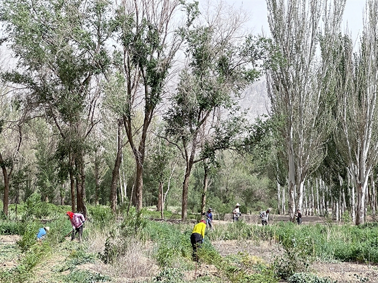 近日,乌拉特后旗西补隆林业管护中心出动护林员10余人,开始今夏除草工作。护林员们有的手拿锄头,清除云杉苗周边的杂草和杂物,有的用剪刀、锯子等工具对绿植进行修剪,大家齐心协力为绿化苗木正常生长提供良好环境。