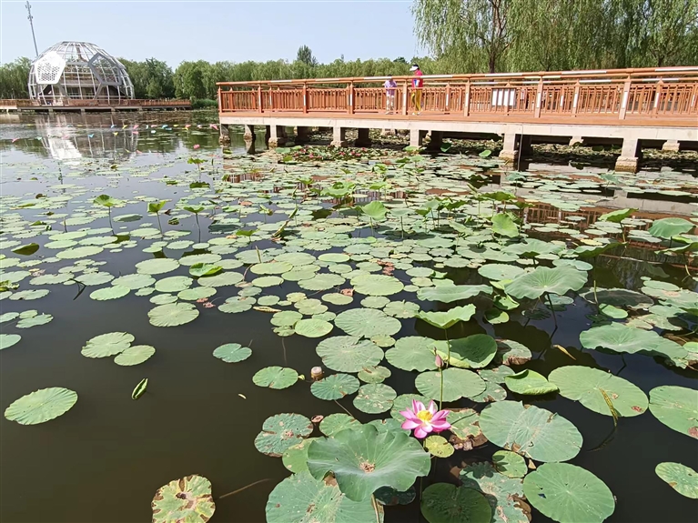 近日,市足球主题公园的荷花开了。粉红色的荷花犹如碧水中的一抹胭脂,鲜艳热情,翠绿的荷叶伴随着微风轻轻摇曳,使得荷花更加娇艳动人。