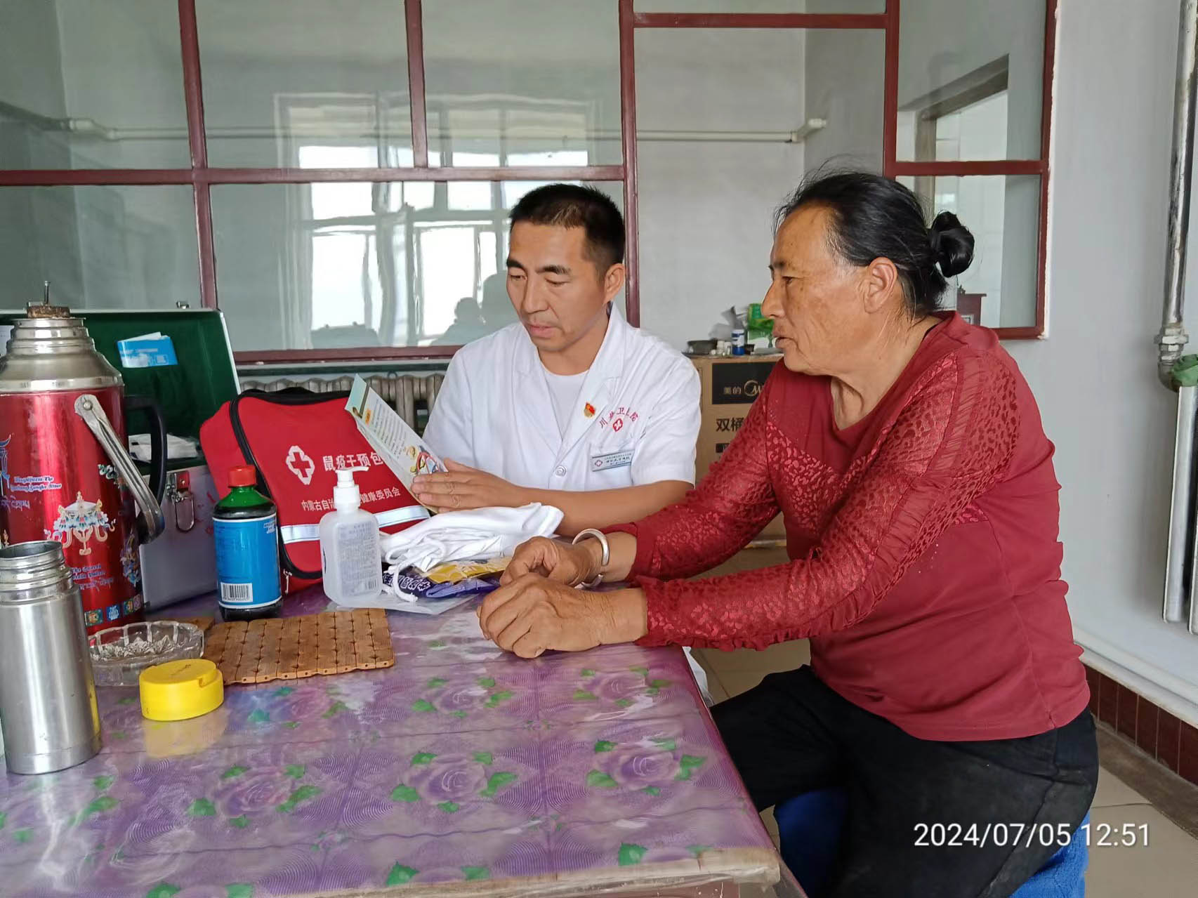 7月5日,乌拉特中旗川井卫生院工作人员入户随访健康保障小药箱,并发放鼠疫干预包,向牧民讲解鼠疫防控知识。