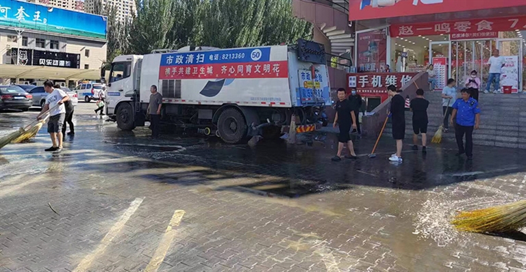 7月17日下午,针对临河百乐宫门前路面油渍污染这一“顽症”,临河区城市管理综合行政执法局联合巴彦淖尔市市政环境发展(集团)有限公司以及商户开展油污大清洗行动,还道路干净本色,为市民提供清洁舒适的城市环境。