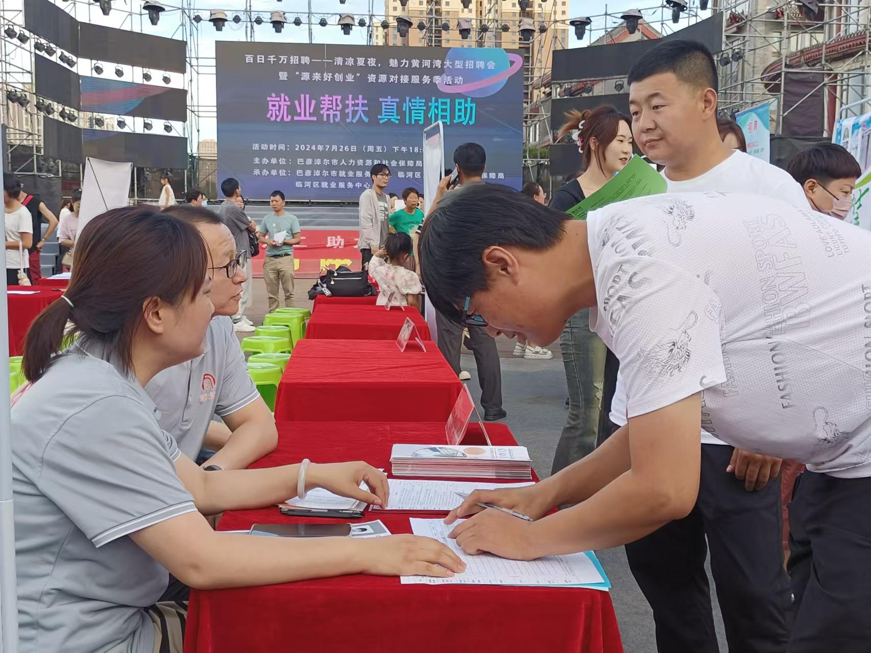 7月26日晚,临河黄河湾步行街人头攒动,以“就业帮扶 真情相助”为主题的“清凉夏夜,魅力黄河湾”大型招聘会火热开启。