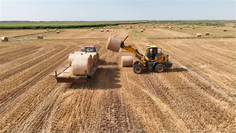 这几天,走进磴口县渡口镇南尖子村,在一块块麦收后的田间,一台台秸秆打捆机来回穿梭,伴随着机器轰鸣声,一捆捆圆柱形的秸秆整齐地排列在田间,让平日里不起眼的麦草成为磴口打好黄河“几字弯”防沙治沙攻坚战的“利器”,实现麦草变废为宝,变“柴”为“财”,鼓起了农民的钱袋子,变“生态包袱”为“绿色财富”。
