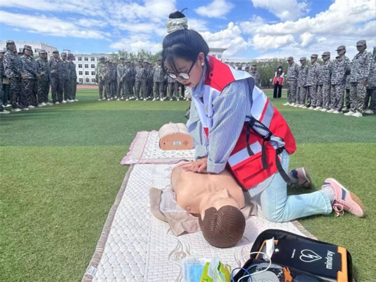 磴口县红十字应急救护培训走进高一新生军训课堂