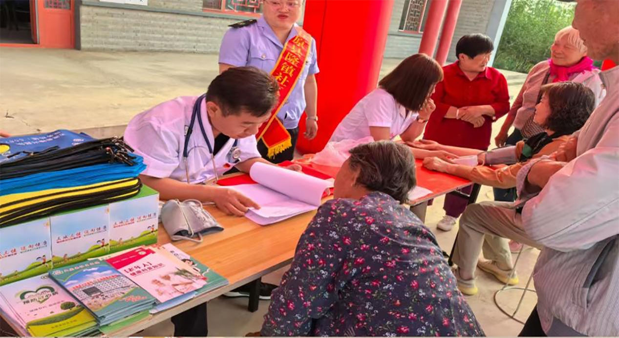 8月28日,五原县医共体总院社区医院医务人员走进健康帮扶村镇——复兴镇和胜村二组,开展“巩固拓展脱贫攻坚成果同乡村振兴有效衔接”义诊宣传活动,为村民测量血压、血糖,普及健康知识,倡导大家健康饮食、科学控制体重、戒烟限酒。