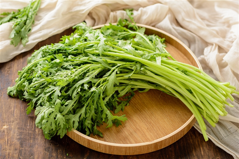 茼蒿中胡萝卜素含量高,进入人体后可以转化成维生素A,有助于保护视力。