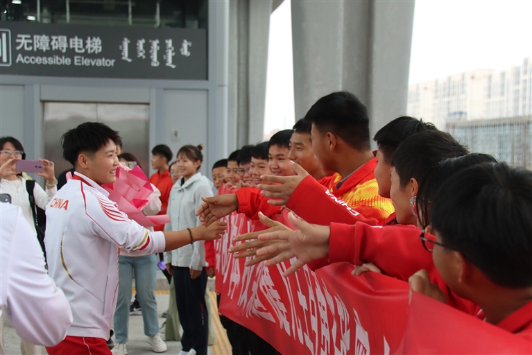 9月11日17时32分,一声清脆的汽笛声响起,呼和浩特方向驶来的复兴号C489次列车进站了。几分钟后,巴彦淖尔籍运动员、巴黎残奥会盲人柔道女子70公斤级银牌获得者王月从车厢走出,在站台等待迎接的人们立刻拥到她的身边……