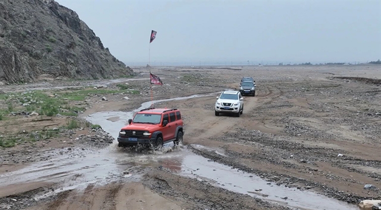一路上,自驾游爱好者驾驶越野车驰骋在雄伟的阴山下,沿着蜿蜒的沙漠车道上下起伏,时左时右,加速冲顶,下坠失重,一路尖叫声不断,车手们凭借着精湛的技艺和过人的勇气,不断征服一个又一个的挑战,让游客既能体验山路十八弯的乐趣,又能感受爬坡过坎起起伏伏的快感。