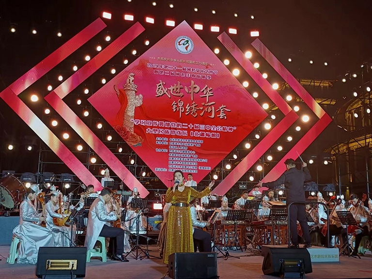 9月20日晚,“北疆畅想”内蒙古艺术剧院民族乐团大型民族管弦乐专场音乐会在临河黄河湾步行街举行。