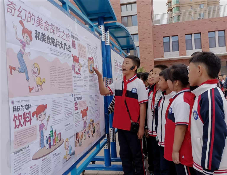图为学生代表讲食品安全知识。