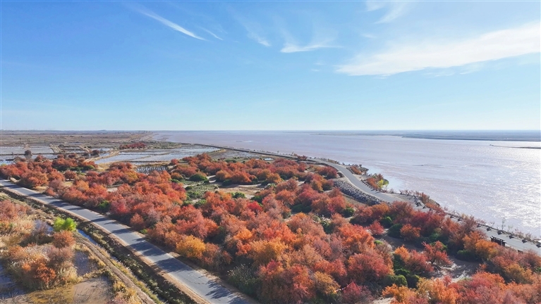 眼下,黄河国家湿地公园300多亩红柳集中开花,一棵棵红柳在秋日的微风中摇曳生姿,与流动的黄河水相映成趣。