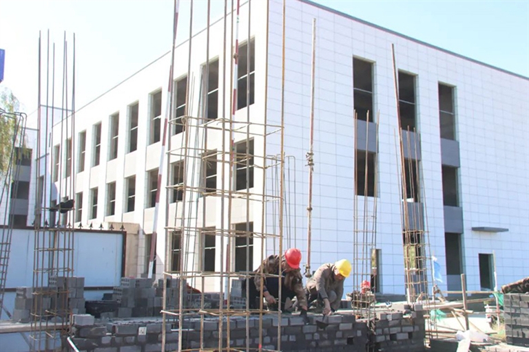 目前项目已完成医院主体结构抹灰和外墙装修等工作,正在对院墙、门房、楼层窗户等施工,预计2025年底交付并投入使用。