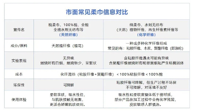 市场上存在“棉柔巾”和“绵柔巾”,虽然只有一字之差,但产品实际采用的纤维却相差甚远。