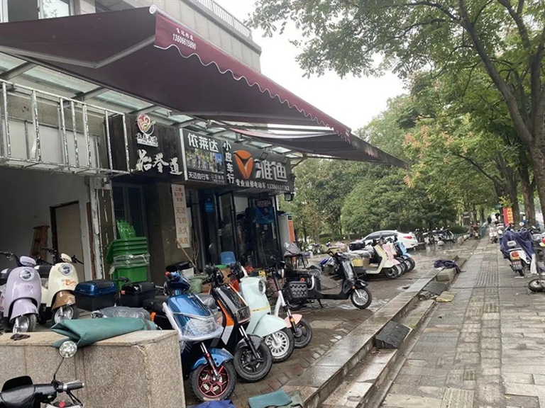 这家商店,挂着雅迪品牌,卖的车牌子却非常杂。 潮新闻记者 王晨辉 摄