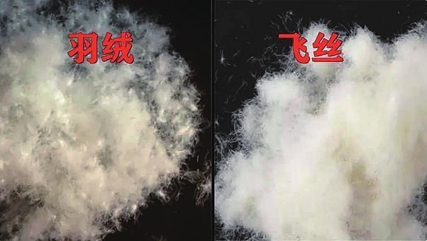 所谓“飞丝”,是指在羽绒加工过程中,从羽毛上脱落下来的单根短丝。由于其形态与羽绒有相似之处,当“飞丝”和“羽绒”被填充进被壳后,无论是从外观看,还是用手直接触摸感受,消费者都极难分辨出二者的差异。工作人员向记者介绍,同样一款外观的羽绒被,充“90绒”成本需要800元,充“高丝”成本只要400元。