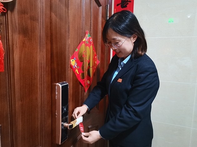 看到物业工作人员给自家门把手戴上“手套”,业主朱美红开心地说:“物业想得真周到,这虽然是件小事,却让我们的心里暖暖的,住在这样的小区里感觉很幸福。”