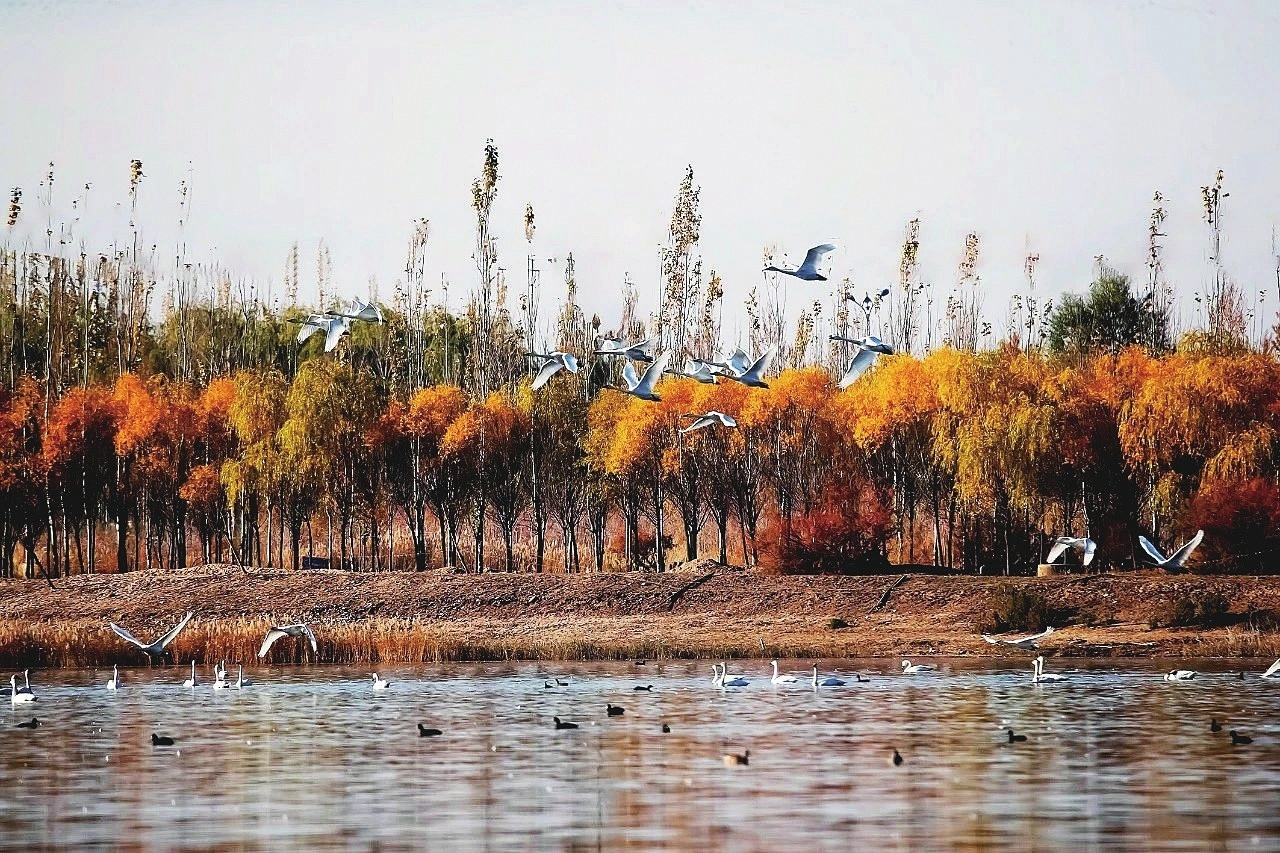 湖漾天鹅影 记者 齐鸿雁/摄