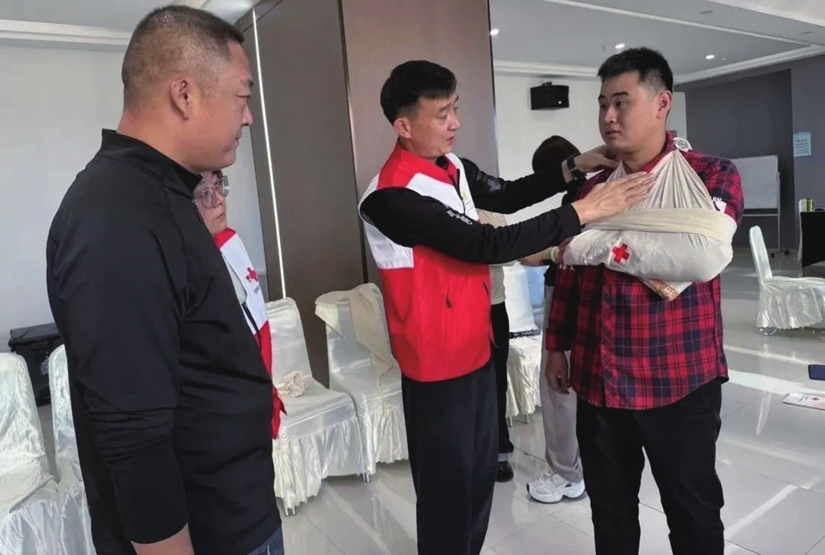 在市红十字会培训老师毛燕的带领下,学员们围绕心肺复苏术、创伤救护等应急救护技能,展开“大练兵”模式,确保全员熟练掌握急救技能。