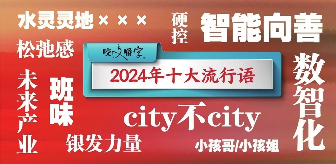 12月2日,《咬文嚼字》发布“2024年十大流行语”,分别为:1.数智化;2.智能向善;3.未来产业;4.city不city;5.硬控;6.水灵灵地×××;7.班味;8.松弛感;9.银发力量;10.小孩哥/小孩姐。