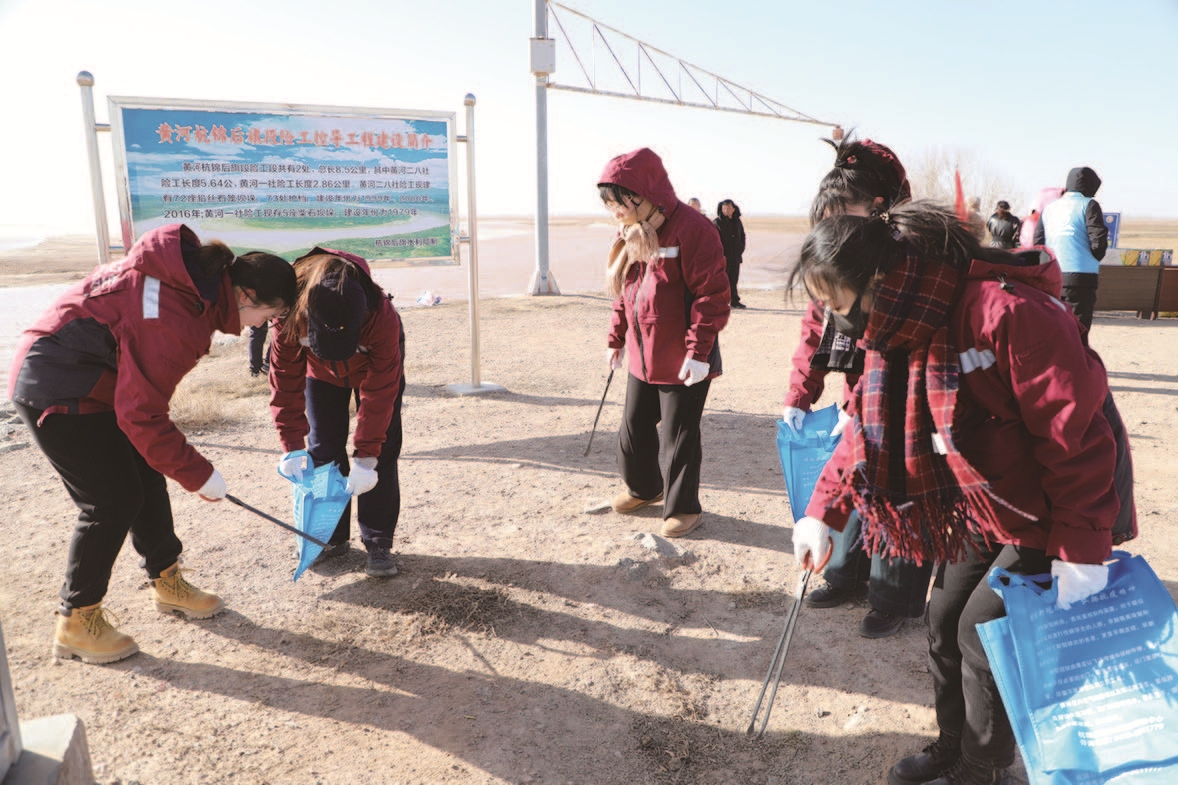 活动中,志愿者们拿着垃圾袋、钳子等工具,分工协作,沿河岸进行垃圾清理,用自己的实际行动践行环保理念,守护碧水蓝天。最后,志愿者们纷纷执笔,庄重地在百人“助力‘三北’工程 保护母亲河”志愿服务践诺横幅上签下自己的名字,将志愿服务的种子种在心中。