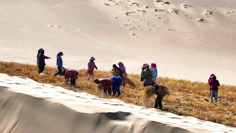冬日的风,带着刺骨的寒意,吹过戈壁的每一寸土地,卷起细小的沙尘。在乌拉特后旗“三北”防护林本巴图沙漠治理现场,连日来,数百名治沙工人迎着凛冽的寒风,向着又一个万亩治沙目标发起冲锋,划线、开沟、压草方格……火热的施工景象呈现在眼前。