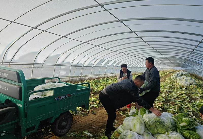 田俊承包33座大棚在夏季种植白梨脆香瓜等瓜果作物后复种大白菜,由于种植时间晚导致开园推迟,且尚未建立稳定的销售渠道,错过了最佳销售时间,导致大部分白菜滞销。大佘太镇紧盯百姓急难愁盼,主动担当作为,充分挖掘本地消费潜力,由镇政府牵线搭桥,整合佘太酒业、禾兴公司2家本地龙头企业及加正德农贸专业合作社、大佘太瑞全恒养殖专业合作社2家农业合作社等资源力量,通过集中销售一批、爱心选购一批,政企联动解决滞销产品销售难题,让“滞销菜”变“暖心菜”。
