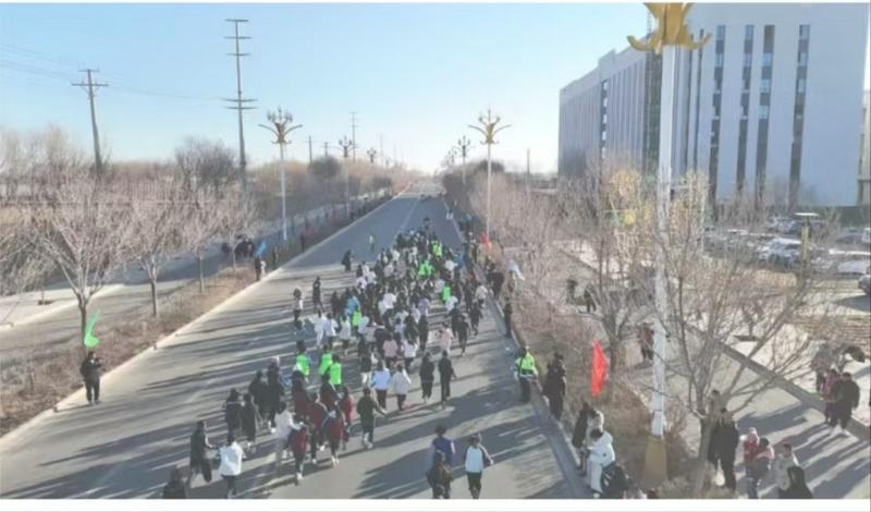 随着发令枪响,比赛正式拉开帷幕,选手们如离弦之箭般冲出起跑线,瞬间点燃了现场的气氛。赛道上,选手们奋勇争先。小学组的小选手们虽然年纪尚小,但步伐坚定,眼神中透露出对比赛的专注与执着。他们稚嫩的脸庞在寒风中冻得通红,但依然咬牙坚持,克服身体的疲惫和寒冷天气带来的挑战。中学组和高中组的比赛则更加激烈,选手们体能和耐力更胜一筹,奔跑过程中展现出了良好的团队协作精神。在比赛的关键路段,选手们相互鼓励、相互支持。赛场外,由各学校师生组成的啦啦队员热情高涨,为每一位参赛选手加油助威。