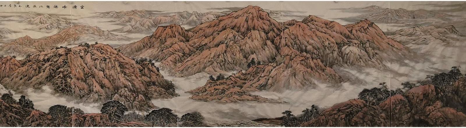 中国画《云腾峰起 碧水长流》(200cm×600cm) 赵旭方/作