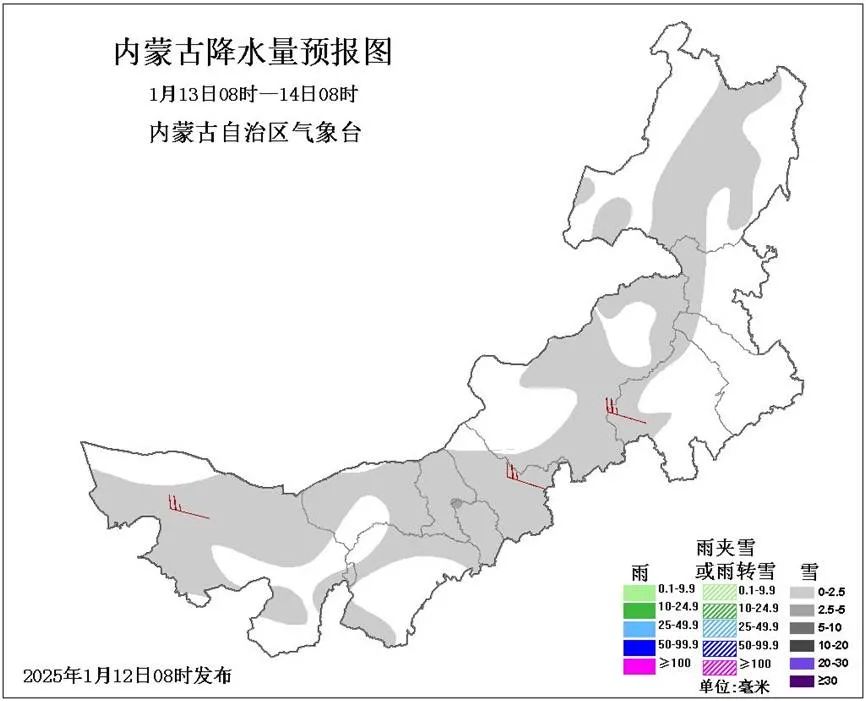我区西部偏北、中部、东部大部地区多云,其中,阿拉善盟西北部、巴彦淖尔市大部、包头市、呼和浩特市北部和中部、乌兰察布市、锡林郭勒盟大部、赤峰市大部、通辽市西北部和东部、兴安盟西北部、呼伦贝尔市中部和北部有小雪,其中,乌兰察布市北部局部地区有中雪,其余地区晴间多云;西部大部、中部偏西地区3、4级西南风转4、5级短时6、7级局地8级偏西风,西部偏西地区局地伴有沙尘天气。