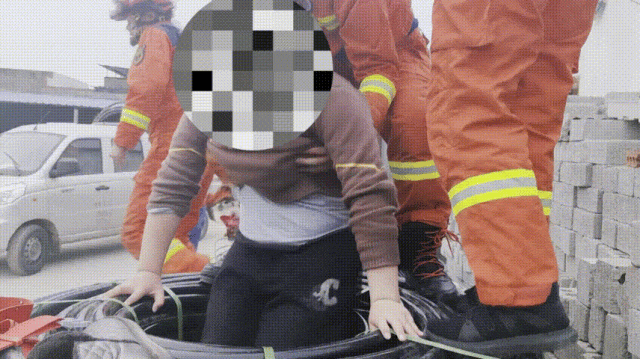 据了解,男孩在玩耍时发现旁边有一个电缆圈,出于好奇心跑过去玩耍,结果不小心掉进了“圈套”难以自拔。
