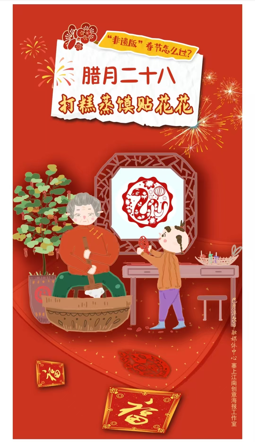 二十八,打糕蒸馍贴花花
