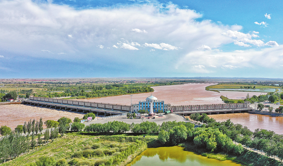 “三盛公水利枢纽的建设,让黄河安定下来,居民才得以安居,治理沙漠、发展生产、建设家园。”官亦鸣说,几十年前,出门到处是沙,修路时清除沙丘,不时就能从沙中挖出被沙埋没的房子。如今的县城,碧树环抱,流水潺潺。