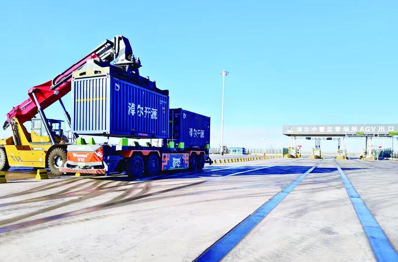 在甘其毛都口岸淖尔中慧海关监管场所,AGV无人驾驶车辆在专用通道上高效运行,成为这座中蒙边境口岸的科技名片。去年,该口岸通关过货量达4071.59万吨,其中AGV运输通道累计运行超5万次,运载进口煤炭360万吨,达全年设计运力的36%。“AGV模式将通关效率提升了30%。未来,年运力可达千万吨级。”内蒙古淖尔中慧物流有限公司副总经理王博说。目前,智能化煤棚已进入设备安装阶段,投用后将大大提升AGV运输的整体装卸效率,使AGV运输实现年通关1000万吨目标。