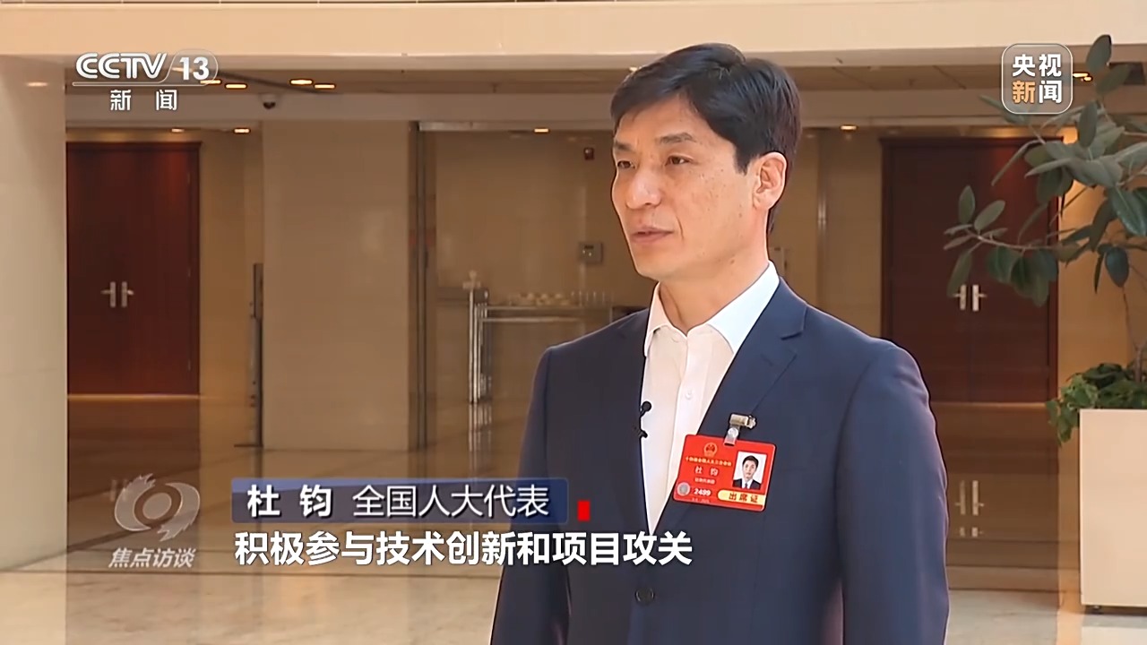 全国人大代表 杜钧:企业是创新的主体,作为一线产业工人,我们将立足生产线,积极参与技术创新和项目攻关,在智能设备操作、工艺优化、技术协同中发挥桥梁作用,让实验室的创新成果在生产线上扎下根、结出果。