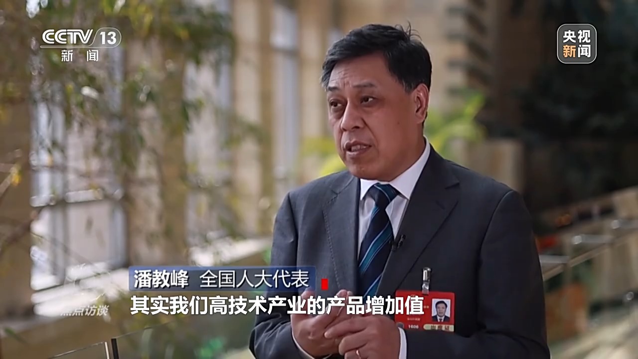 全国人大代表 潘教峰:其实我们高技术产业的产品增加值已经远远快于其他行业的增长,几乎是GDP增速的一倍多将近两倍。像集成电路、机器人等,它的增速是两位数以上的,这背后反映出新质生产力发展的效果。