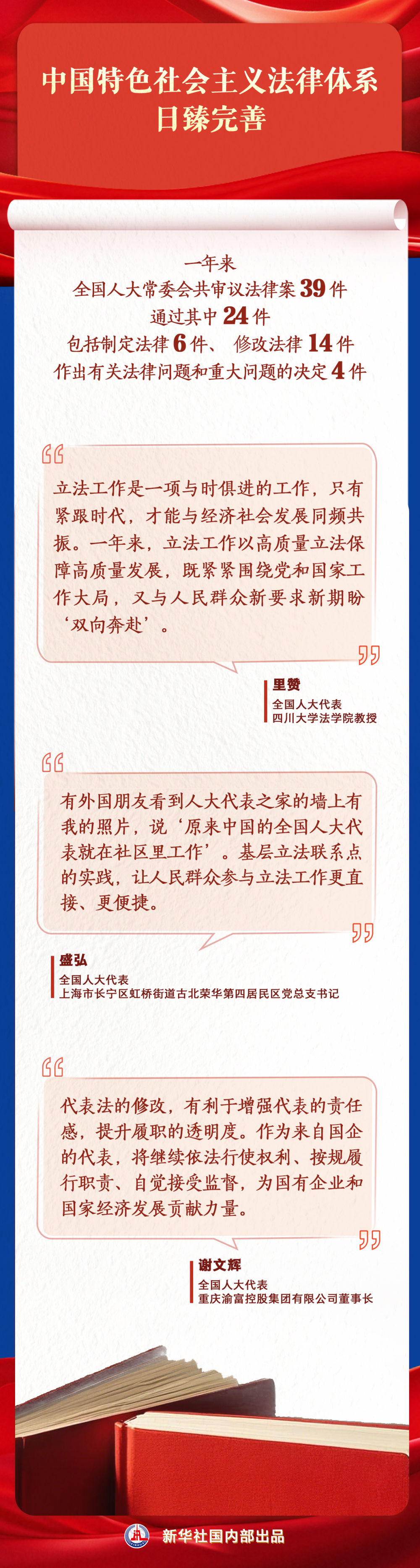 全国人大常委会工作报告展现重点领域、新兴领域、涉外领域立法“成绩单”