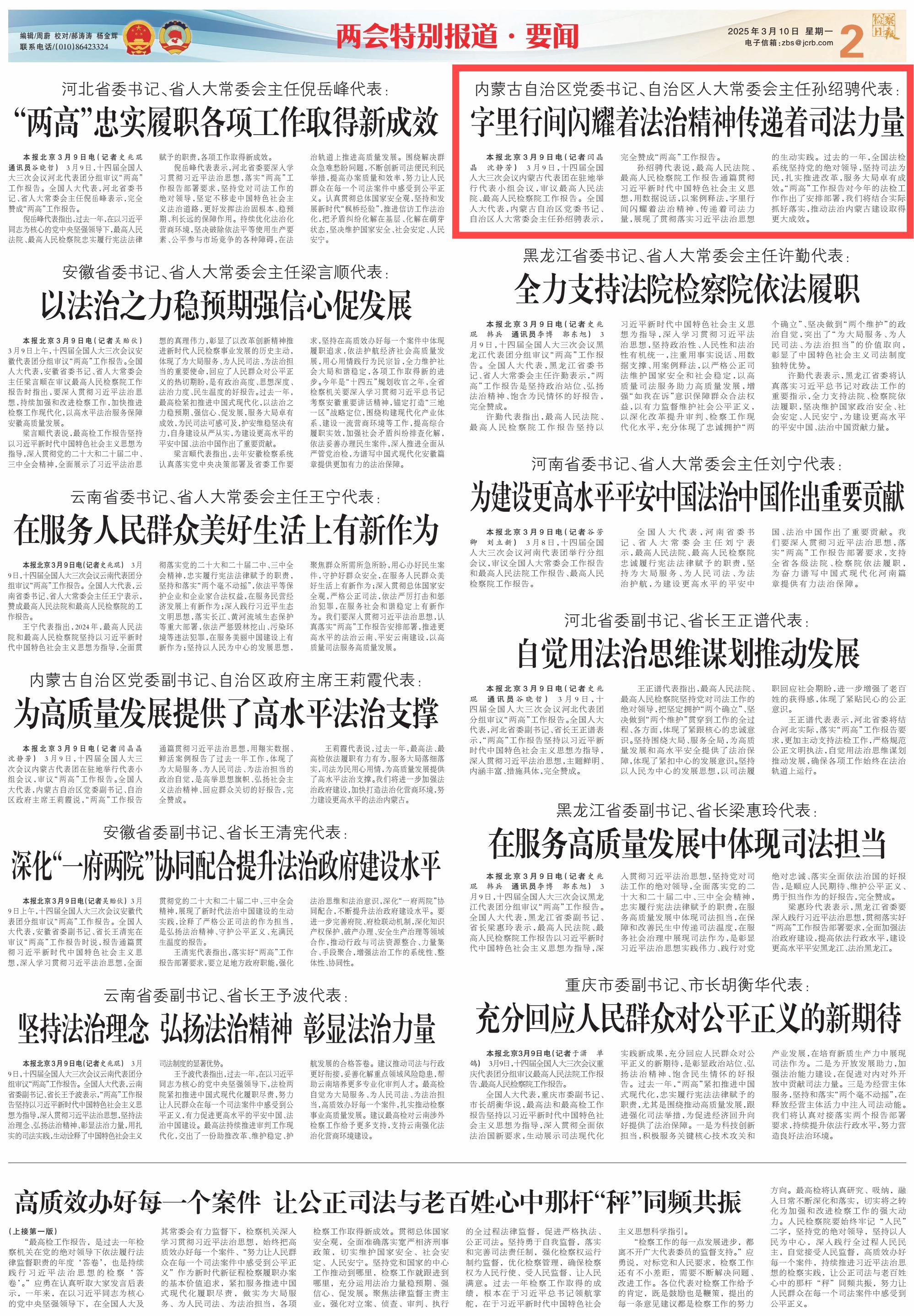 2025年3月10日,《检察日报》第2版刊发题为《内蒙古自治区党委书记、自治区人大常委会主任孙绍骋代表:字里行间闪耀着法治精神传递着司法力量》的文章。