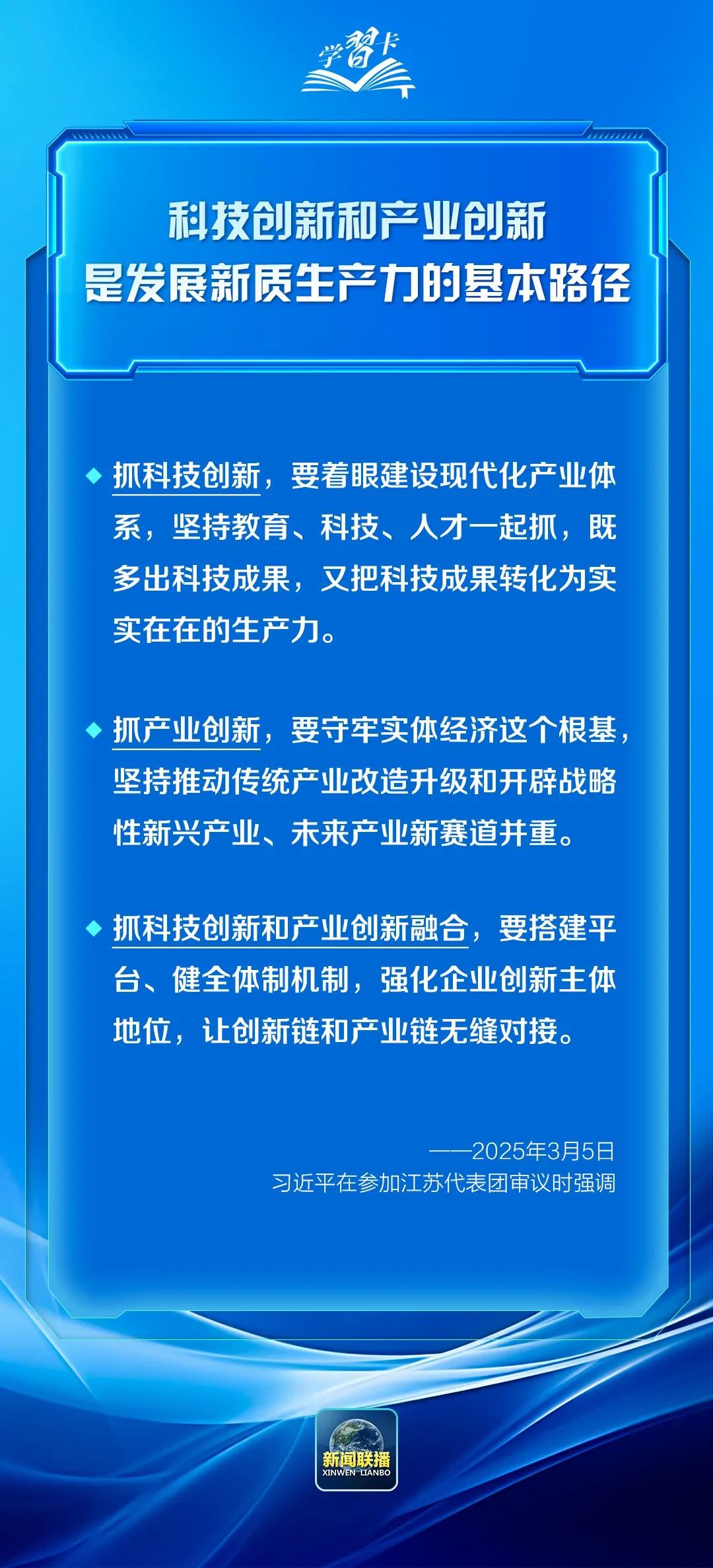 2025年全国两会期间,习近平总书记参加团组审议讨论时,多次提到科技创新这一关键命题,强调“科技创新和产业创新,是发展新质生产力的基本路径”。一起学习↓