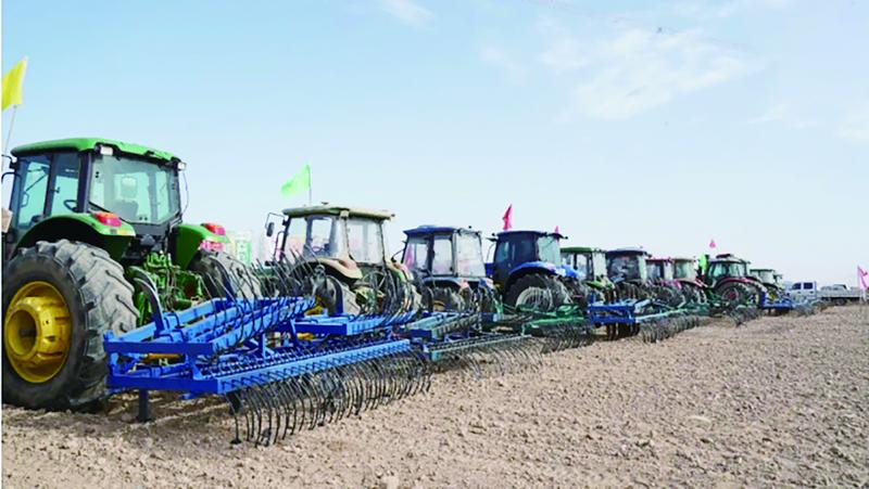 伴随着嘹亮的汽笛声,一台台大型播种机在田间来回穿梭,一粒粒饱满的种子随着播种机的轰鸣声被播撒进肥沃的土地,一幅生机勃勃的春耕画卷徐徐展开。农牧民们脸上洋溢着喜悦的笑容,期盼着新的一年风调雨顺、五谷丰登。“我今年计划种植小麦1300亩,现在正是播种的好时候,趁着天气好,抓紧时间把种子播下去,希望今年能有个好收成。”乌盖苏木富海嘎查村民贾世军说。