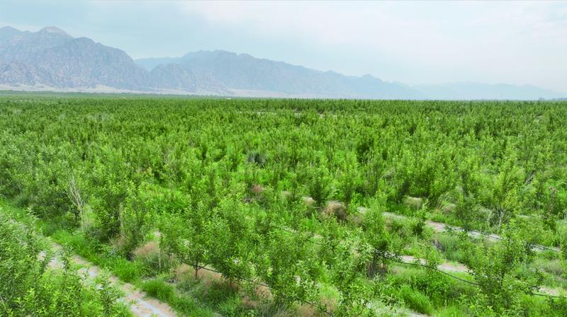在白彦花镇塔汗其嘎查的新优特林果产业园,依托良好的生态环境和丰富的土地资源,通过“党支部+公司+基地+农牧民”的模式运营,实现了引进一个企业,带动一批产业,带富一方群众,达到“花开结果,果落生金”的良好态势。“我们向当地农牧民提供种苗、提供技术、订单回收果品,保障了农牧民收入,也壮大了村集体经济。同时,种植经济林对清新空气,涵养水源,保育土壤也有着重要作用。”乌拉特前旗尚鸿林果科技有限公司基地负责人王宝林说。