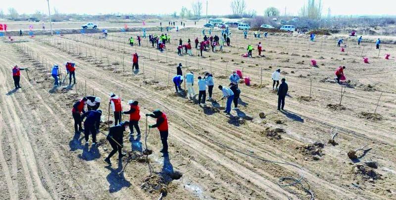 常态化开展义务植树活动。在每年植树造林黄金季节,组织开展全市义务植树活动,市党政军领导,各级党政机关、事业单位、群团组织干部群众及城乡居民积极参与。今年3月25日,磴口县、杭锦后旗、五原县、乌拉特前旗同步开展全民义务植树大会战,3000余名干部群众参与,栽植生态与经济价值兼备的巴旦木、契丹香果、沙枣、梭梭等各类苗木约6.74万株。