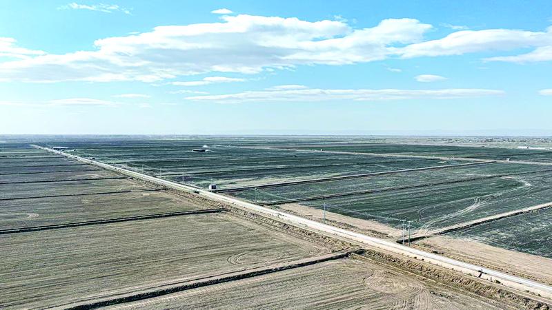 这是4月13日拍摄的五原县新公中镇盐碱地综合利用试点项目区施工现场。