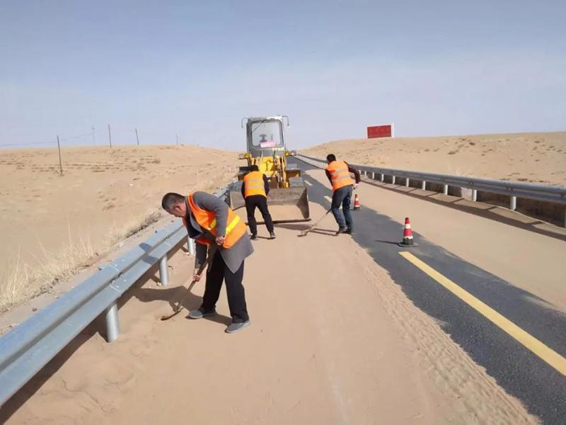 市公路养护中心乌拉特后旗所迅速启动“分段包干、人机结合”作业方案,在确保安全前提下开展清沙作业。为保障过往车辆和行人安全,该所严格落实“清沙先设障”原则,在作业现场设置警示灯、导向牌,安排专人疏导交通。针对夜间低温天气,为一线养护人员配备安全保温棉服和应急药品,确保作业安全。此次清沙,共出动机械5台、养护人员12人,清理积沙320立方米。