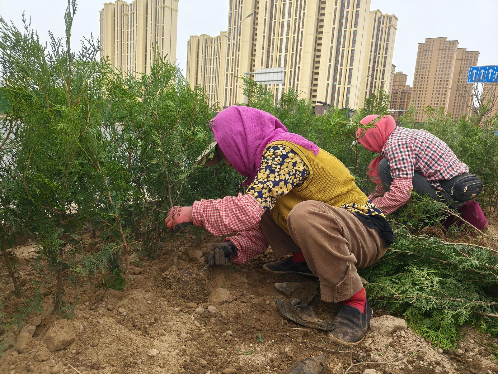 日前,在临河城区丰州路绿化施工现场,园林工人们正熟练地将上万株侧柏苗栽植入土。“我们10人班组日均栽植量达1.8万株,预计5日内完成该路段种植任务。”园林工人王继英介绍说。
