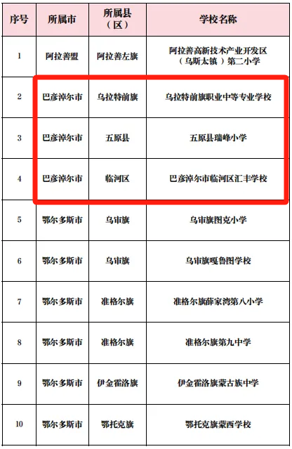厉害了!巴彦淖尔3所学校入选国家级名单