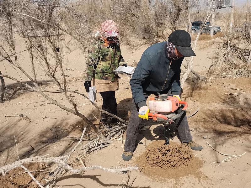先进机械在沙地上规模化作业,压制沙障、栽植梭梭,全方位提升了防沙治沙效果。相比过去人工压沙障,采用机械铺设沙障的速度提高3倍多,且机械铺设的沙障厚度均匀、深度能统一为15厘米,抗风固沙能力更强,达到了提升作业效率、降低人工成本、保障作业安全稳定性、提高治沙效果持久性的显著成果。