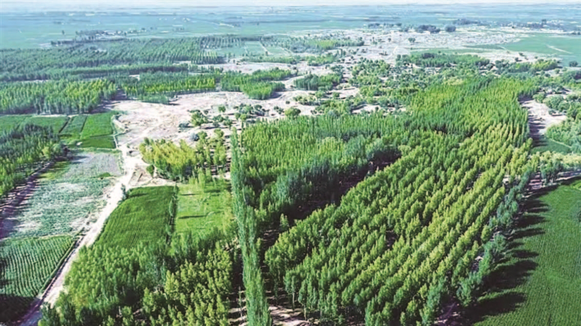 步入临河区国营新华林场,穿过林荫小径,曾经的沙丘之上,杨柴、梭梭已然扎根。三代人接续奋斗,林场从遍地沙窝和荒滩到森林覆盖率达88%,筑起了一道防沙治沙的绿色屏障。