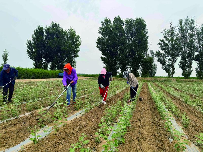 在保障性苗圃作业区,一排排新疆杨幼苗傲然挺立,20余名工人正有条不紊地忙碌着,有的专注松土,有的细心耙地,一片热火朝天的景象。“这些树种耐干旱、耐瘠薄,非常适合在我们这一带生长,为全旗‘三北’工程黄河‘几字弯’攻坚战、矿山整治植被恢复以及全旗的重点区域绿化、乡村道路绿化等提供了苗木保障。”东风林业管护中心党支部书记薛志强说。