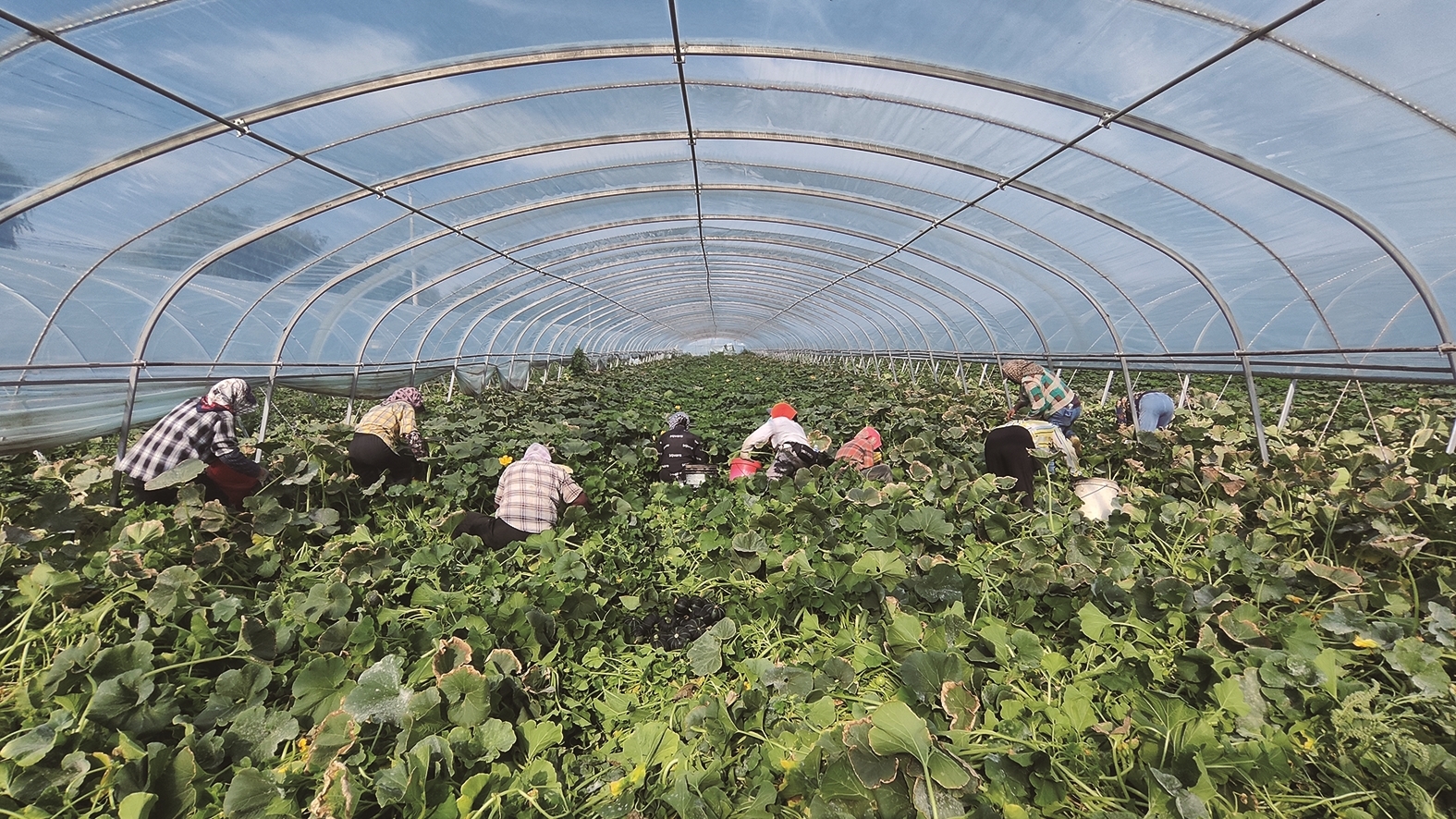 “今年贝贝南瓜长势喜人,亩产能到4000斤,比去年多了两成!”东地村党支部副书记樊继龙随手捧起一颗圆滚滚的南瓜,笑着告诉记者,“不同品种收购价在1.5元每斤到3.5元每斤之间,算下来总收入能有400万元。8月中下旬还能收二茬,产量能达到头茬的三成左右。”更让他高兴的是,基地让35名本地村民实现了“家门口”就业,在采摘季人均能挣4000多元。通过大棚经营和统一销售,村集体经济也壮大起来。