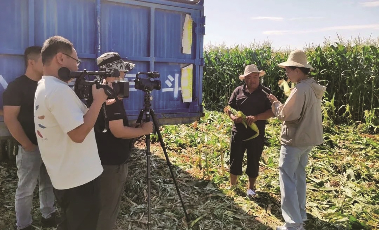 直播过程中,主播带领观众沉浸式体验玉米收获的热闹场景,直播全方位展现了从收割机采收玉米到现代化加工车间的完整旅程。